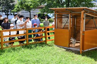 地域や保護者の協力を得て学校の中庭に小屋と囲いの柵を設置した