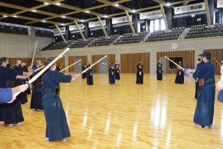 剣先を意識して竹刀を振る参加者