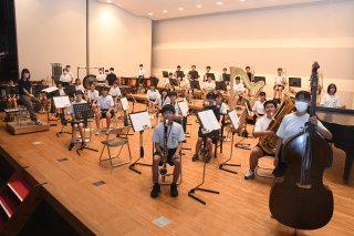 西関東大会の出場メンバー。本番を間近にし、妙高市文化ホールで練習(8月31日)