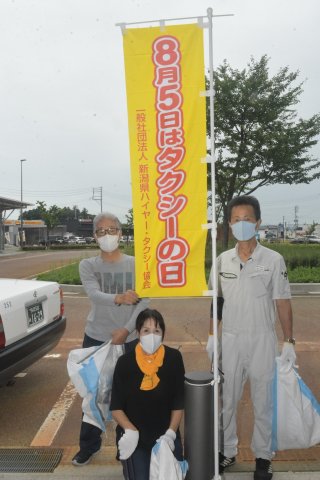 3人が東口、西口でたばこの吸い殻などを拾い集めた(上越妙高駅)