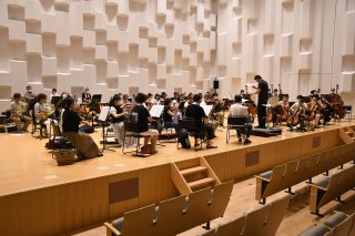 高田城址公園オーレンプラザで開かれたオープンリハーサルで練習の様子を公開