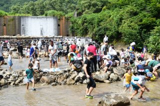 多くの参加があった魚のつかみ捕り