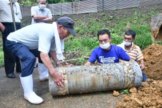 重機や手作業でタイムカプセルを掘り起こした