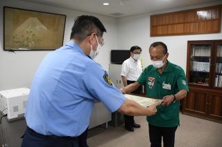 セブン―イレブン上越安江店を代表してオーナーの保高さんに感謝状を贈呈