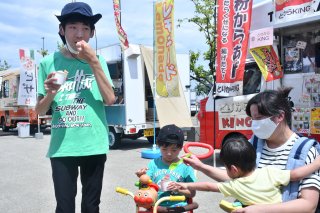 アイスなど子どもが楽しめるものも提供。家族連れが涼を取っていた(11日)