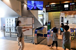 帰省の出迎え、再会の光景が見られた北陸新幹線糸魚川駅改札口(11日午後0時49分)