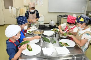 ゴボウやシイタケなどを具材としたおこわをササの葉に