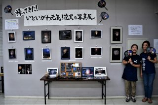過去の打ち上げの様子などを紹介する写真展(糸魚川信用組合本町支店)