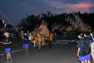 稲穂竿灯が輝く中、厳粛に進んだ奉納の儀式