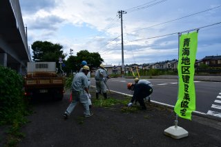 植栽帯や歩道の草刈りなどを行う参加者