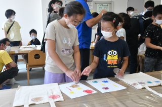 無印良品直江津が用意したスタンプやバッグを用い、マイバッグ作りを楽しんだ
