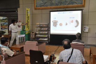 市民サロンで開いた歴史講座の様子。顕聖寺遺跡で発掘された土偶と耳飾りについて解説
