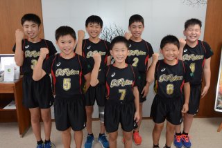 選手7人で全国に挑むグリーンファイターズのメンバー(7月下旬、市長表敬訪問時に撮影)