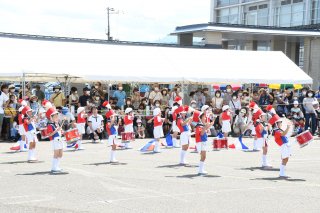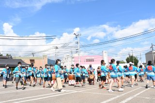 あらいばやし保存会と新井小6年生。オープニングを飾った