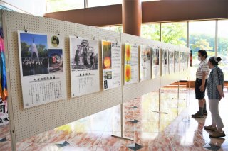 写真や絵を通して被爆の恐ろしさや苦しみを伝える「原爆と人間」展(青海総合文化会館内)