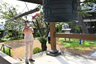 糸魚川市内の各協力寺院で「平和の鐘」が鳴り響いた(寺島1の円照寺)