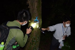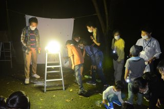 ライトトラップに集まるさまざまな昆虫を観察