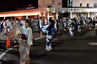 糸魚川駅日本海口ロータリーで繰り広げられたフィナーレの「ミニ市民流し」