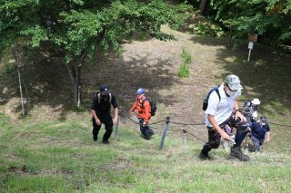 なかに会のメンバーが、修復され金色に輝くみこしを担いで練り歩いた