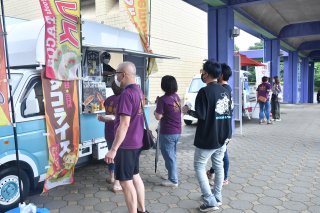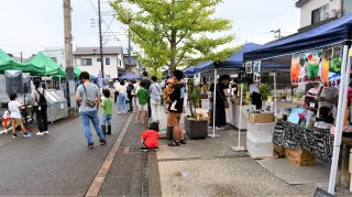 糸魚川駅北の仲町通り(みいちゃん通り)に並んだ多数の地元出店を家族連れや学生らが楽しんだ