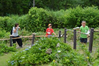 階段の落差と長さを利用した流しそうめん。子どもたちは大喜びだった