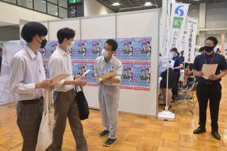 企業担当者は会場を訪れた学生、高校生にパンフレットなどを配りアピールした