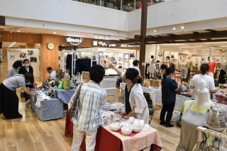 ぐるぐる市の会場。写真左奥は国府小6年生の絵画