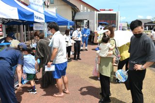 3年ぶりの啓発活動。海保、警察の車両やマスコットも登場し、海での事故や交通事故に注意を呼び掛けた