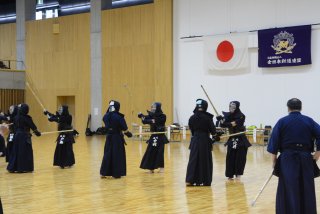 壁画制作に向け、事前学習を実施。制作時に使用する専用定規を用い、描き方を学んだ(6日、大潟町中)