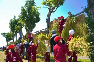 15面:東本町小5年生 稲刈り、はさ掛け体験 田中ファーム協力