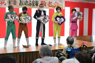 4面:あいれふ安塚 敬老祝賀会 一層の長寿を願う 賀寿者表彰し出し物も