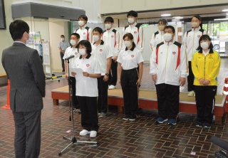 8面:国体、障害者スポーツ大会 全国の舞台で全力を 上越市役所で壮行会