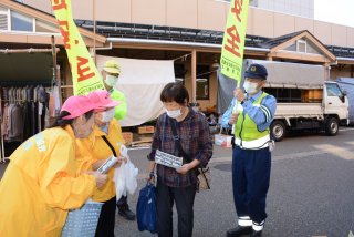 15面:ルール守り交通安全 朝市で高齢者ら啓発 安協女性部・妙高警察署