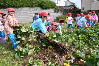 11面:〈芋掘り、焼き芋 収穫の秋に笑顔〉自力で掘り出し喜びの声 聖公会紅葉幼稚園