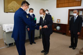 当選者4人に防犯機能付き電話機を贈呈。近日中に設置されるという