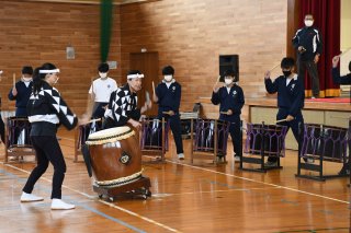 9面:「鼓童」招きワークショップ 直江津中3年生 22日の演奏会で共演も