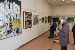 8面:個性豊かな27点7日まで作品展 絵画教室「彩友会」