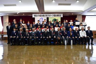 今年も交流試合を通じ親睦を深めた関根学園野球部OB会(左)と現3年生部員