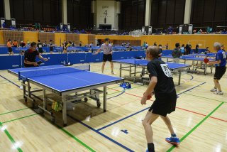 昨年の交流大会を経て、真剣勝負の大会としてスタート。得点を決め大きくガッツポーズ