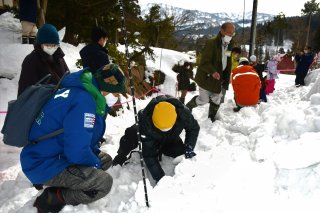 10面:雪崩の仕組み学ぶ 2年ぶり親子雪崩防災教室 探索救出も体験 板倉区の地すべり資料館