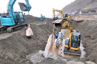 1面:〈いとルポ~糸魚川深掘り~〉(2)イワシ大量漂着 大騒動 糸魚川市筒石漁港海岸 処分方法が二転三転 回収難航、悪臭に悲鳴