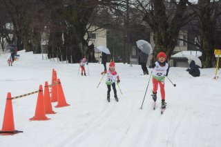 13面:雨の中、雪上を力走 小中学生29人が出場 中郷クロカンスキー大会