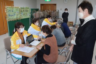 「片貝クラブ」の選手5人を迎えて親睦を深めた能生ゲートボール連盟会員(糸魚川市能生小泊、すぱーく能生)