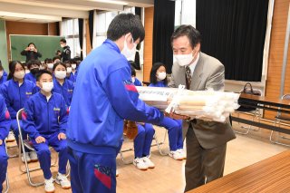 15面:少年剣士の遺志継いで たくろう未来基金が竹刀20本を寄贈 浦川原中