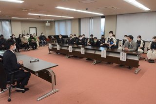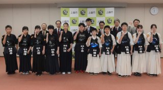 13面:地元全国大会へ意気込み 出場選手ら市長表敬 25日から全国スポーツ少年団剣道交流大会