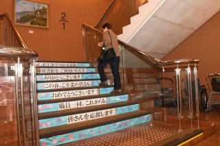 15面:卒業祝福 門出応援 直江津学びの交流館 階段にメッセージ