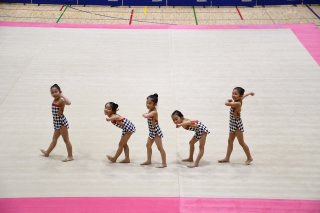 8面:第8回上越新体操選手権 フロア上で伸びやかに 年代別に個人、団体戦